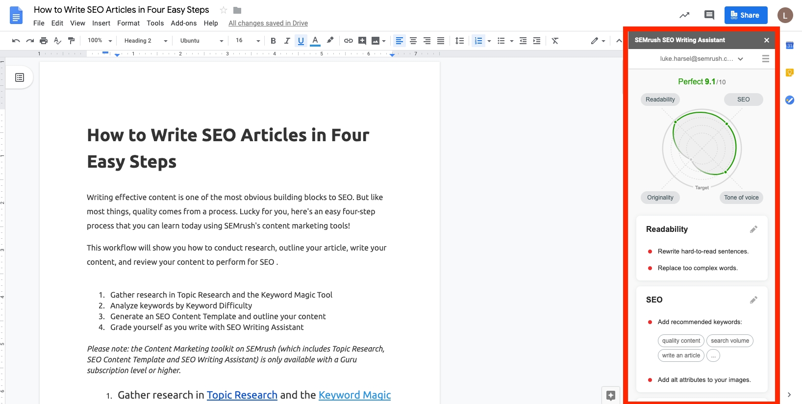 The SEO Score is a measure of how well the user-facing and technical aspects of your site contribute to search engine optimization, and ultimately, higher rankings and organic traffic. Your site's final SEO Score is determined by its performance in four subcategories: Technical, Content, User Experience, and Mobile.